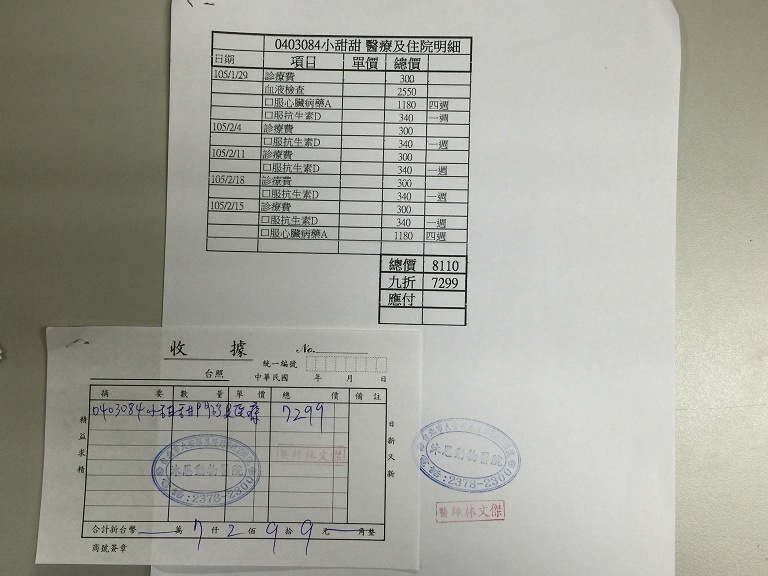 主題: 患有心臟病又容易感冒的小甜甜 申請者姓名: 臺北市支持流浪貓絕育計劃協會 花色: 申請日期: 2016-03-02 18:07:16 申請者部落格: 申請者臉書網址: 所在縣市/合作醫院: 台北市/其他院所醫助專案(醫院請先MAIL溝通) 治療費用: 7299元 需求人數: 17人 已結案 (2024-06-01 13:39:48) 報名人員: Sunny Chen(已付款)、Yi-ling Lu x2(已付款)、Nana(已付款)、karena(已付款)、Huitzu(已付款)、TKS(已付款)、常在心(已付款)、常在心、Ricky(已付款)、Ling、吳斑比 x6(已付款)、yana(已付款)、阿噗魚(已付款)、 候補人員: 動物病情說明: 小甜甜的心臟一直以來都不太好,