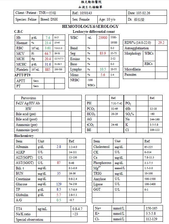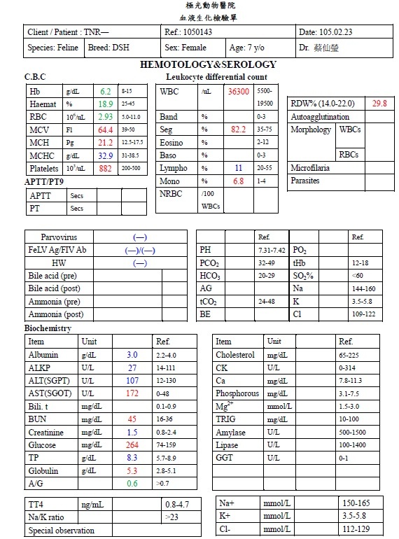 並多檢查了貓愛滋、白血病和心絲蟲等檢測,
