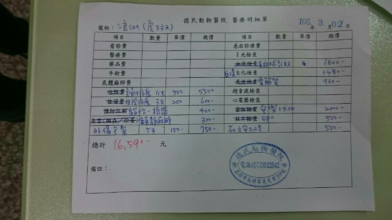 主題: 病奄奄白血病路倒虎斑貓 申請者姓名: Chi Ying Sung 花色: 申請日期: 2016-03-14 11:36:59 申請者部落格: 申請者臉書網址: 所在縣市/合作醫院: 高雄市/新德民動物醫院 治療費用: 16590元 需求人數: 37人 已結案 (2024-06-01 13:39:13) 報名人員: Dison(已付款)、島本小姐(已付款)、琪小惠(已付款)、彈珠、cynthia(已付款)、Hsiao-Wen Ho(已付款)、WeiMin Lin(已付款)、Jerry Huang(已付款)、Laurence Jhan(已付款)、王小(已付款)、Norman Wu(已付款)、Lien Lily x2(已付款)、薇薇安 x2(已付款)、NanaArthur(已付款)、Ed Tsai x5(已付款)、mavis(已付款)、吳瑞泉(已付款)、徐雅嬪 x2(已付款)、比比(已付款)、Jube(已付款)、李坤財(已付款)、cherry(已付款)、Tea Black(已付款)、Tea Black、幽(已付款)、Michelle Chuang(已付款)、Derek(已付款)、Estee(已付款)、Ya Yun Cheng(已付款)、李小艾(已付款)、Guan-Yi Li(已付款)、bearishym(已付款)、 候補人員: 動物病情說明: 我自己本身是養了7隻貓咪,都是這2-3年路上遇上的落單幼貓,也會自費幫忙自家附近公母貓tnr,自己有印製宣導貼紙放在認識的店家,家門口有做一個大木屋有柵欄(貓進的去狗進不去)每天有吃到飽的飼料還有水……上星期在家附近的廟(高雄岡山區華園路)拜拜遇到一隻躺在路邊的虎斑公貓,腿上有很深爛爛的傷口,直覺是生病很嚴重了,馬上回家拿誘捕籠誘捕,帶去平常家貓常去的醫院,德民動物醫院,醫生馬上檢驗醫療,原以為只是受傷有營養不良而已,想說住院幾天就可以帶回,血檢出來後不得了了,腎臟指數太高,白血球指數太高,醫生認定是白血病,而且正在發病,還有脫水,打點滴都無法補充,每天我都去看他,他虛弱的呼吸著,那樣的眼神像是重來沒有被愛過,對人類有恐懼,我摸著他幫他取了名字叫斑斑,希望他能夠有個名字,覺得自己不孤單對抗病魔,幫忙救救斑斑 動物近況說明: 當時因為醫生說白血病會傳染,出院後不能跟其他貓咪一起生活,特地在工作的地方隔了一間房要照顧他,就等他穩定後出院,什麼都準備好了,他卻在告訴他有名字了的隔天撐不過去離開了……他叫斑斑