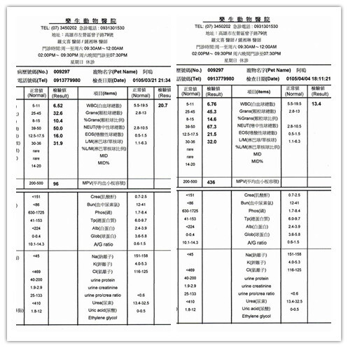 也聽醫生說~點滴沒在打了~因為手腫起來~但因為ㄚ嗚沒辦法投藥~會兇~藥放在飼料罐頭也不吃~只能頭蓋著毛巾~打針~因為ㄚ嗚鼻子還有點分泌物~所以氣霧治療的部分還在持續治療當中~