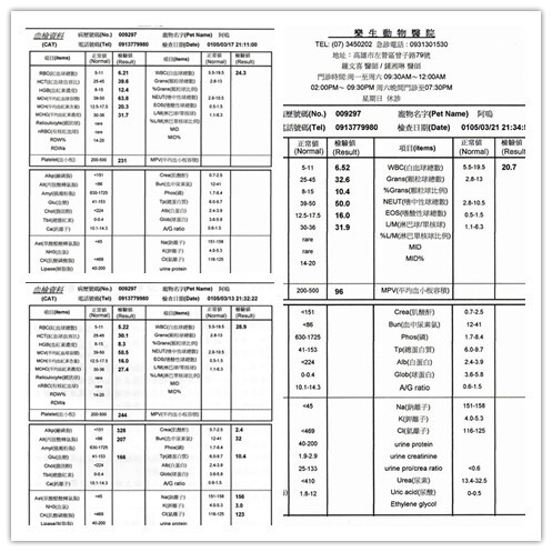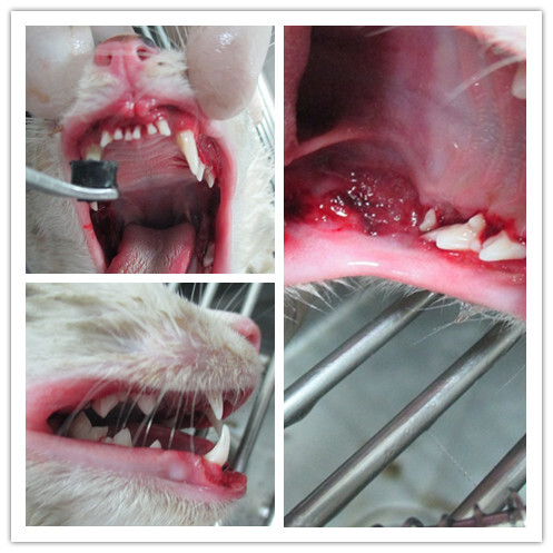 阿嗚到院時有脫水,口鼻有分泌物,且口腔散發惡臭,初步檢查發現口腔嚴重潰瘍且舌頭也有潰瘍,驗血發現,白血球及肝指數過高,除口腔嚴重感染外,肝也有損傷,目前已先洗牙,拔牙並點滴輸液給藥治療動物近況說明: 3/15