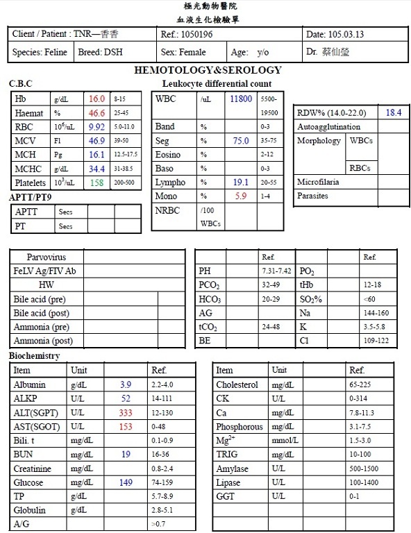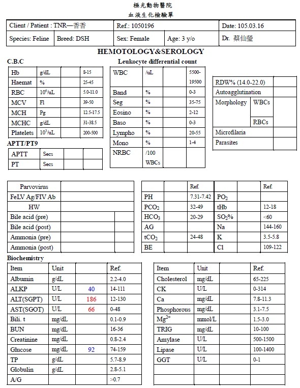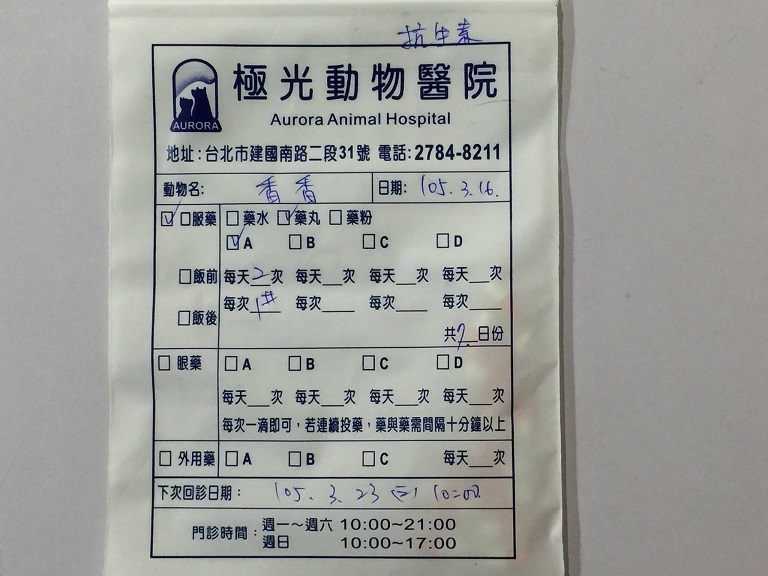 因此下午火速帶香香前往醫院看診並住院觀察。