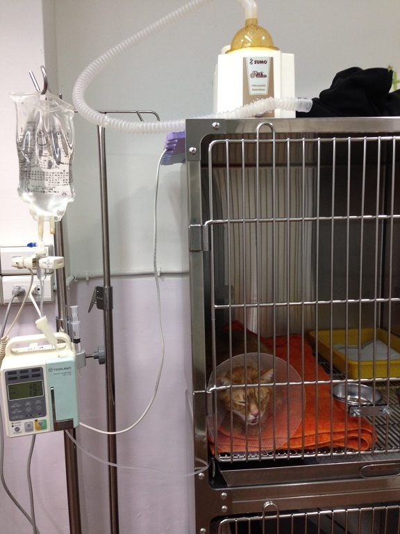 在醫院的籠子裡不停的哀嚎...