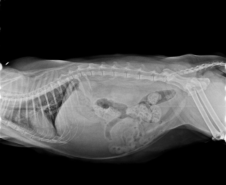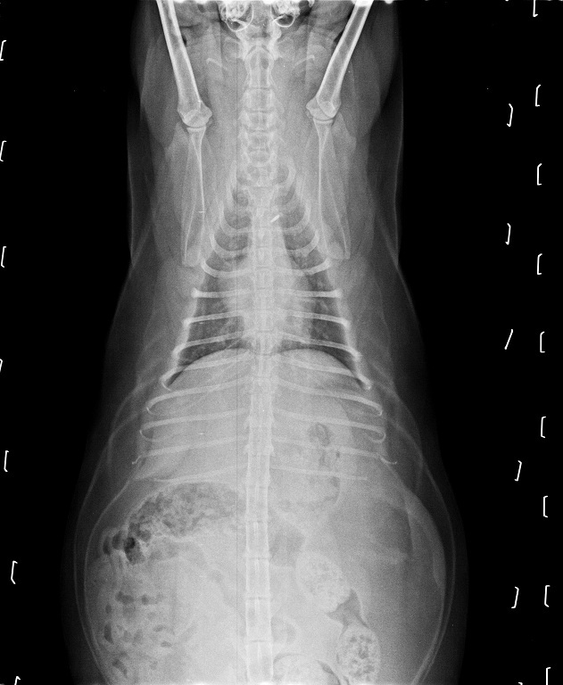 在拍X光照檢視後確認並沒有誤吃奇怪的東西,
