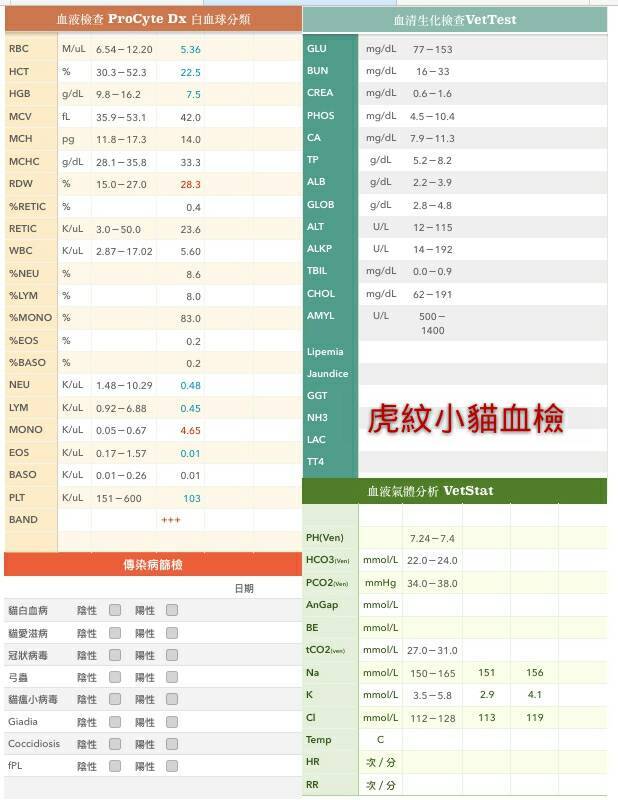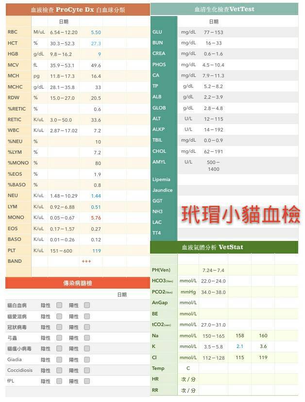 主題: 兩隻貓瘟的小小貓 申請者姓名: 劉雅雲 花色: 申請日期: 2016-04-30 16:19:14 申請者部落格: 申請者臉書網址: https://m.facebook.com/sisly.liu?ref=bookmarks 所在縣市/合作醫院: 高雄市/弘恩動物醫院 治療費用: 9000元 需求人數: 21人 已結案 (2024-06-01 13:37:15) 報名人員: Alex Lai x2(已付款)、邱小燁(已付款)、DC x2、DC x2(已付款)、Chi Chi Ho(已付款)、蝦 x2(已付款)、王琇盈(已付款)、李 其展(已付款)、張小雨(已付款)、何偉靖 x2(已付款)、WZY(已付款)、邱姿榕(已付款)、Mia Chao(已付款)、Laurence Jhan(已付款)、Yun Ting x4(已付款)、 候補人員: 動物病情說明: 因為工作的關係,我平常日下午都會到這邊上班,半年多下來陸續發現一些地方有浪貓,所以也開始餵這邊的貓,因為有一隻玳瑁母貓我發現她時是垂奶的所以一直注意她,餵一陣子後很難可以遇到她出現,但還是都會放一碗飼料,沒想到被那邊居民撞見,跟他們說明了TNR,他們如一般民眾的反應,問我要不要都抓走,然後帶我去看防火巷裡的小貓,他們說本來還有2隻的但這幾天突然陸續死掉了,我看看小貓看起來沒什麼活力,而且旁邊有很多拉稀很嚴重的感覺,我猜想可能是貓瘟>< 所以帶著貓咪接受治療,希望剩下的兩小貓可以有活命的機會 動物近況說明: 原本擔心貓瘟死亡的機率很大,很怕小貓撐不過去,問了醫生是不是只能靠貓咪自己原本的抵抗力而決定了, 醫生很清楚的告知有貓瘟要趕快做輸液讓貓咪代謝,若需要時還可能會輸血,就醫我一離開醫院醫生就馬上進行治療,院長半夜還巡視貓咪傳來狀況,讓我很感動也很感謝,醫院的用心醫療貓咪順利並且很快就出院了,請大家也來幫忙貓瘟小貓的醫療費用^^