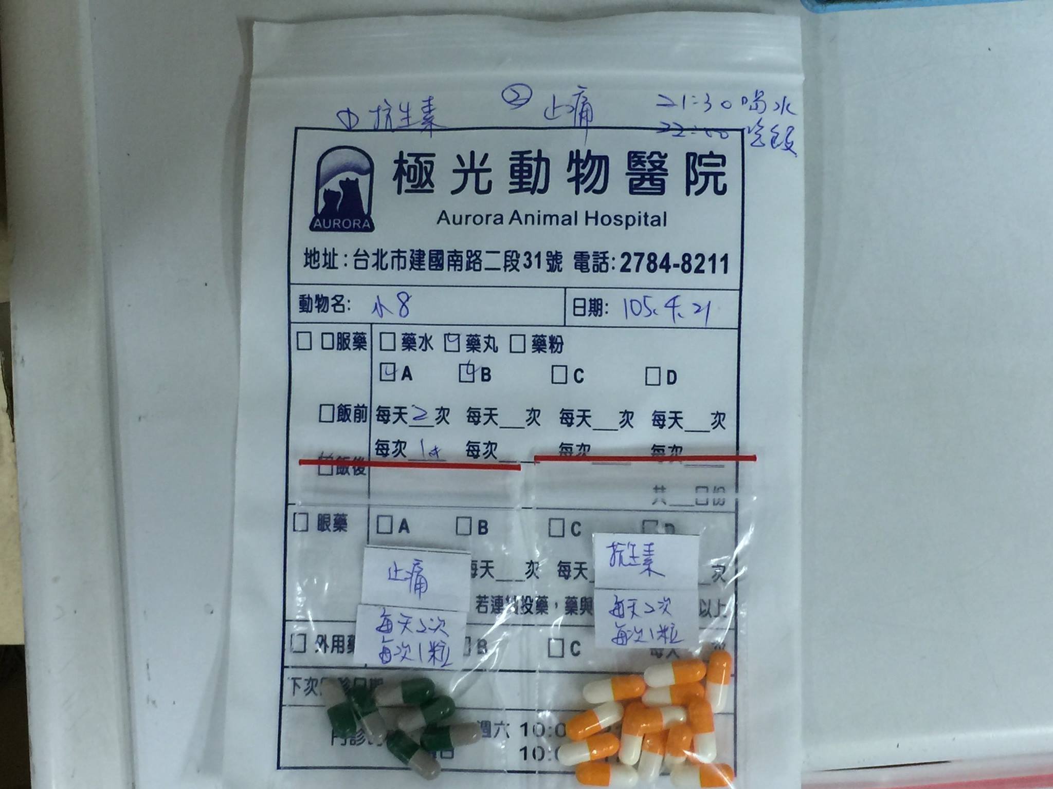 另外醫生開出抗生素和止痛藥。
