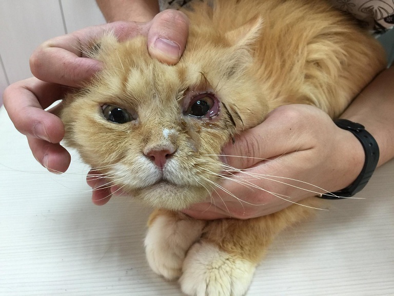懷疑可能是繁殖場因生病而丟棄在路邊的種貓。