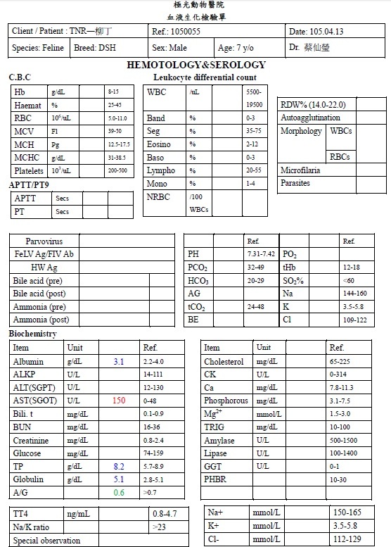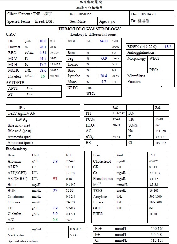 主題: 罹患惡性腫瘤的柳丁 申請者姓名: 臺北市支持流浪貓絕育計劃協會 花色: 申請日期: 2016-04-28 09:44:28 申請者部落格: 申請者臉書網址: 所在縣市/合作醫院: 台北市/其他院所醫助專案(醫院請先MAIL溝通) 治療費用: 13545元 需求人數: 31人 已結案 (2024-06-01 13:36:37) 報名人員: Ray0322(已付款)、cc-ninomi(已付款)、Alada Meow(已付款)、王衣若(已付款)、chucl x2(已付款)、catannchen x2(已付款)、Juei-Yu Hung x2(已付款)、Teresa Hsieh(已付款)、薇薇安(已付款)、阿布 x2(已付款)、李吱吱(已付款)、Alicia Huang(已付款)、HengYi Ho(已付款)、moca(已付款)、李坤財(已付款)、青蛙男(已付款)、張貓貓(已付款)、Nicole Chen(已付款)、Mia Jheng(已付款)、蓉(已付款)、陶幼青(已付款)、迪迪(已付款)、Lucy(已付款)、Estee x3(已付款)、Estee(已付款)、 候補人員: 動物病情說明: 柳丁原本是愛心民眾通報宜蘭收容所的病貓,