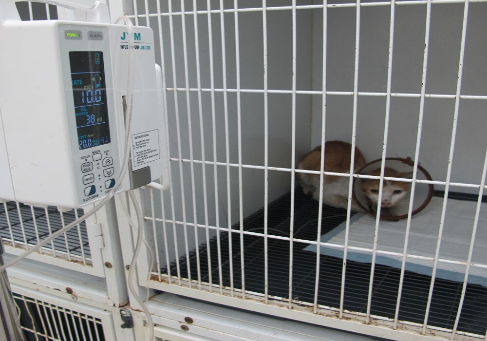當天為改善小咪脫水情形及補充其體力,已給予營養針點滴治療。醫生原預估最壞情況,如拔牙後小咪無法進食,可能要用鼻胃管餵食。
