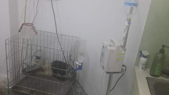 需轉院動物近況說明: 第一天給了長效消炎針並施打點營養針並打24小時點滴,送醫當日恢復良好,已可自行進食,並於第三天危機解除,感染已控制,撤除點滴,給予基本治療,並於第五天可出院,由中途接手照顧,並評估後續下顎皮膚重建的可能性