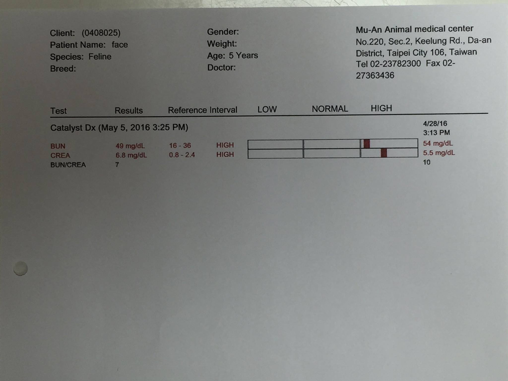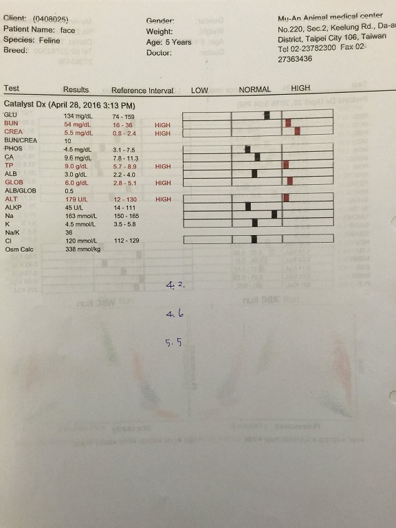 雖然吃了一陣子的腎處方飼料但依舊降不下來,