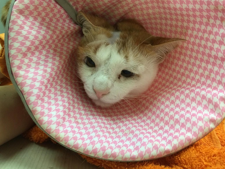 因為耳血腫的關係到醫院進行了縫合手術,