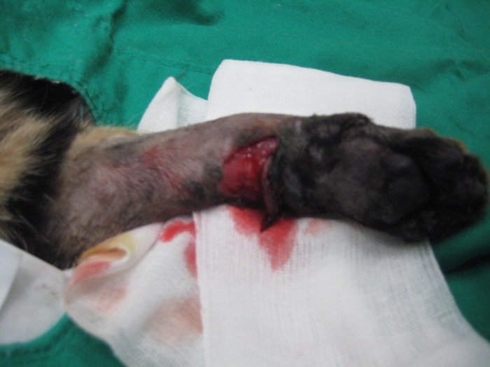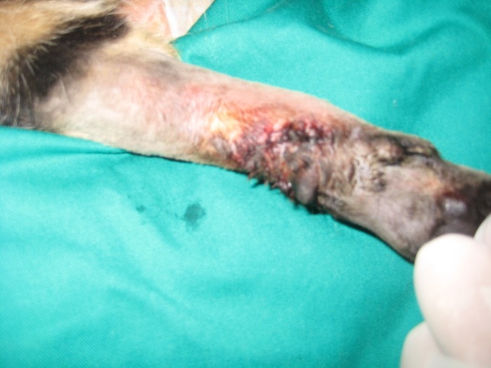 主題: 高雄大虎斑被其他動物咬撕裂傷 申請者姓名: 戴宗庭 花色: 申請日期: 2016-07-18 22:58:29 申請者部落格: 申請者臉書網址: 所在縣市/合作醫院: 高雄市/新德民動物醫院 治療費用: 9900元 需求人數: 23人 已結案 (2024-06-01 13:34:47) 報名人員: Eric Chien(已付款)、劉大實(已付款)、Katechun x2(已付款)、uihnd(已付款)、黃小語(已付款)、Mila Wang(已付款)、Nicole Kang(已付款)、陳皇宇、FiFi(已付款)、鄭家琪(已付款)、Selene Tsai、Yu Ju Liu、Joyce Lin、Joyce Lin(已付款)、Jamie Liu(已付款)、April Tsung(已付款)、Ray0322(已付款)、angelcat(已付款)、chucl(已付款)、Joanna Jan(已付款)、謝凱伊(已付款)、Candy Jian(已付款)、Rosalind Tsai x4(已付款)、 候補人員: 動物病情說明: 協會你好我是高雄志工,我今天下班的時候去餵養我餵養的浪貓發現一隻貓左前肢有撕裂傷趴著不動,當下趕緊回家拿外出籠馬上帶到家裡附近有二十四小時的動物醫院就診,醫生告知有可能是動物咬傷的撕裂傷,當下醫生替傷口做了消毒以及包紮和打了消炎針和抗生素,由於主治醫師不在,醫生告知傷口很新目前沒有感染,包紥後我先帶回中途,今早我會立刻帶至德民動物醫院