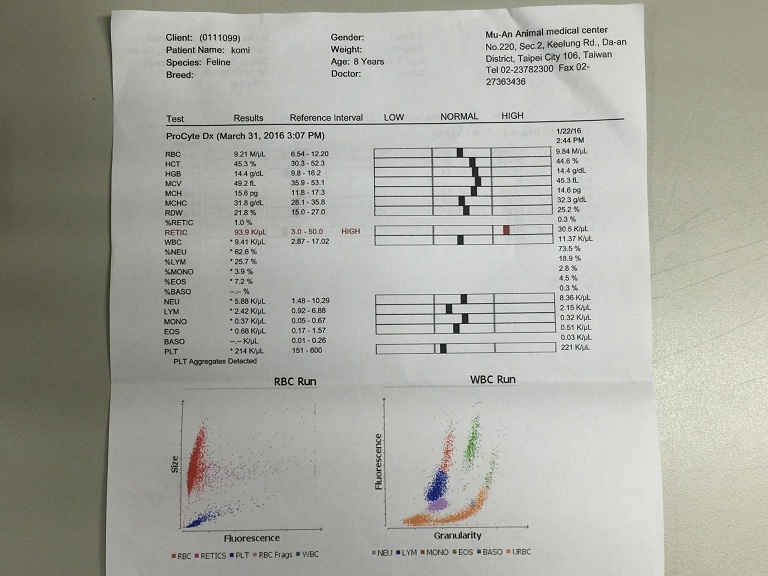 另外醫生今天幫Call me做血液檢查、並無異常。