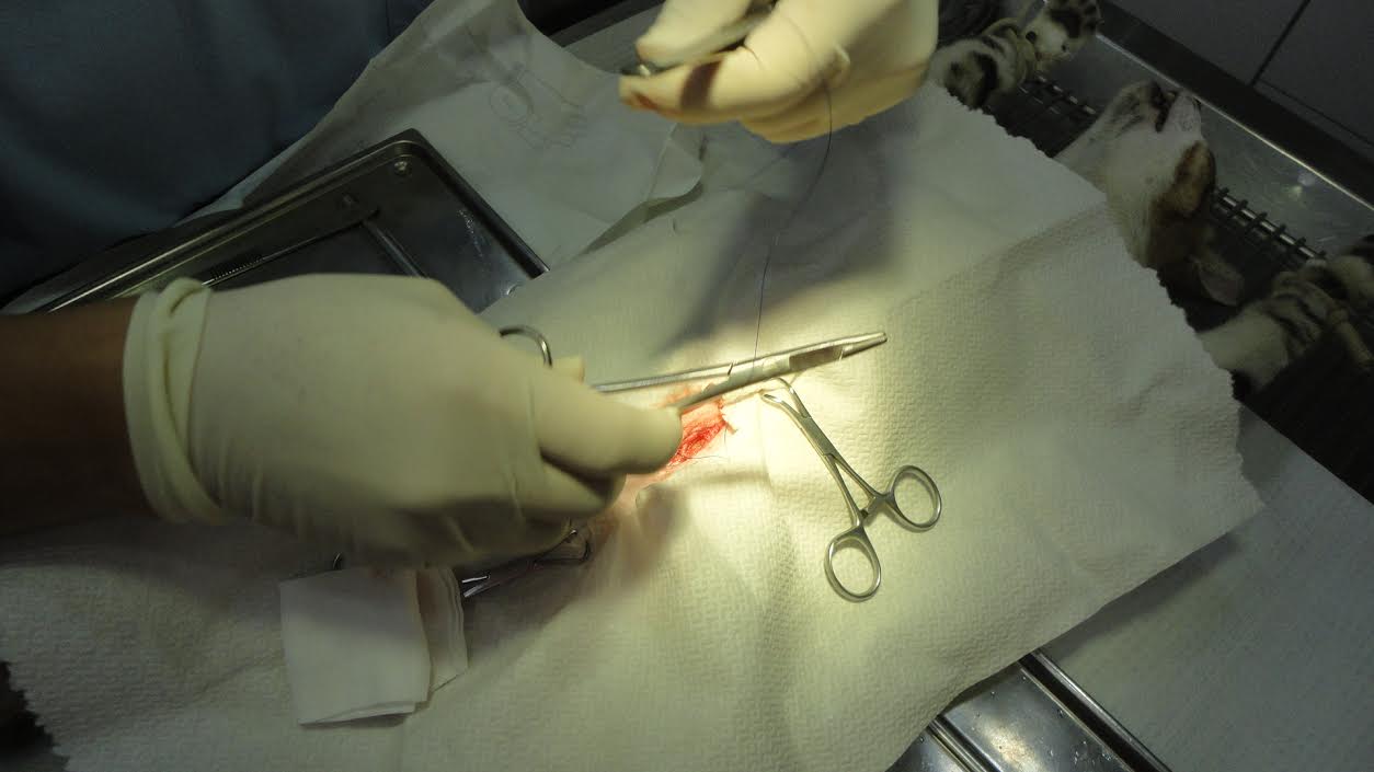 也替貓咪進行疝氣治療將脫出的部分塞回
