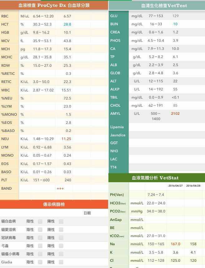 到院第二天痛痛的納中毒現象,有校正好了。但貓還是不自己吃,還是要用灌食,控制營養。
