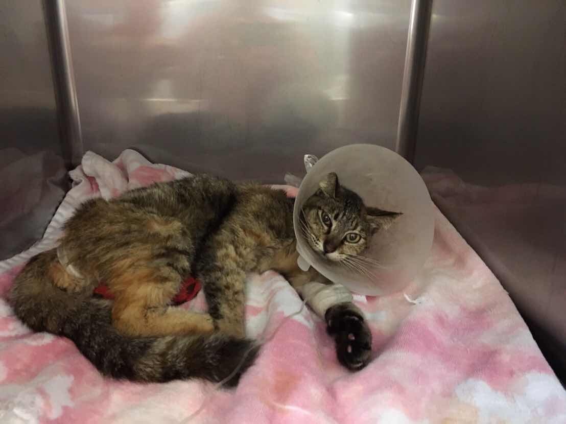 貓咪恢復狀況ok,因為已缺了一腳,不適合野放流浪了,會無法生活,我拜託會照顧貓咪的朋友接出院後,先留置照顧. 貓咪現在過得很好,但還是需要耐心餵她,她看著窗外很想之前自由的生活,但捕獸夾害她截了一條腿,感謝大家幫助痛痛的醫療款