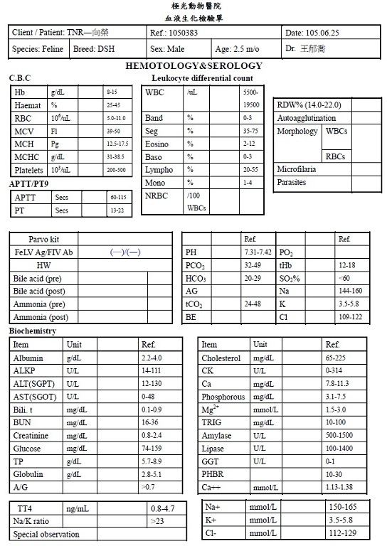 主題: 因病毒感染住院的欣欣和向榮 申請者姓名: 臺北市支持流浪貓絕育計劃協會 花色: 申請日期: 2016-08-07 16:44:51 申請者部落格: 申請者臉書網址: 所在縣市/合作醫院: 台北市/其他院所醫助專案(醫院請先MAIL溝通) 治療費用: 5868元 需求人數: 13人 已結案 (2016-12-22 01:49:56) 報名人員: ERic YU(已付款)、Kim Lin x2(已付款)、Sabrina(已付款)、pei(已付款)、阿芝(已付款)、何春生 x2(已付款)、陳昱先(已付款)、lin789 x2(已付款)、森森(已付款)、Pororo Mei、許心琤(已付款)、 候補人員: 動物病情說明: 欣欣和向榮原本是跟媽媽一起住在東區店家的屋頂夾縫中,