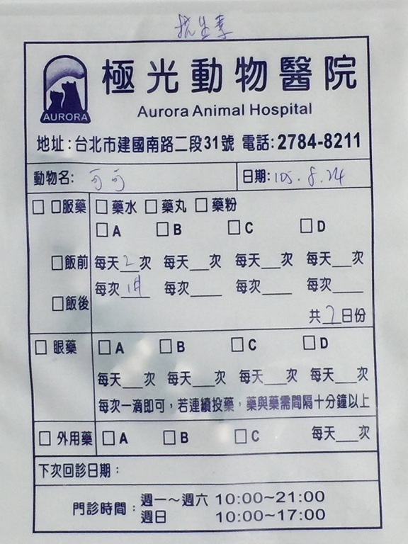 8/19回診:可可- 1.38kg、體溫38.5度沒發燒