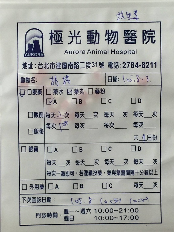 因此醫生續開一週抗生素、早晚各一次。