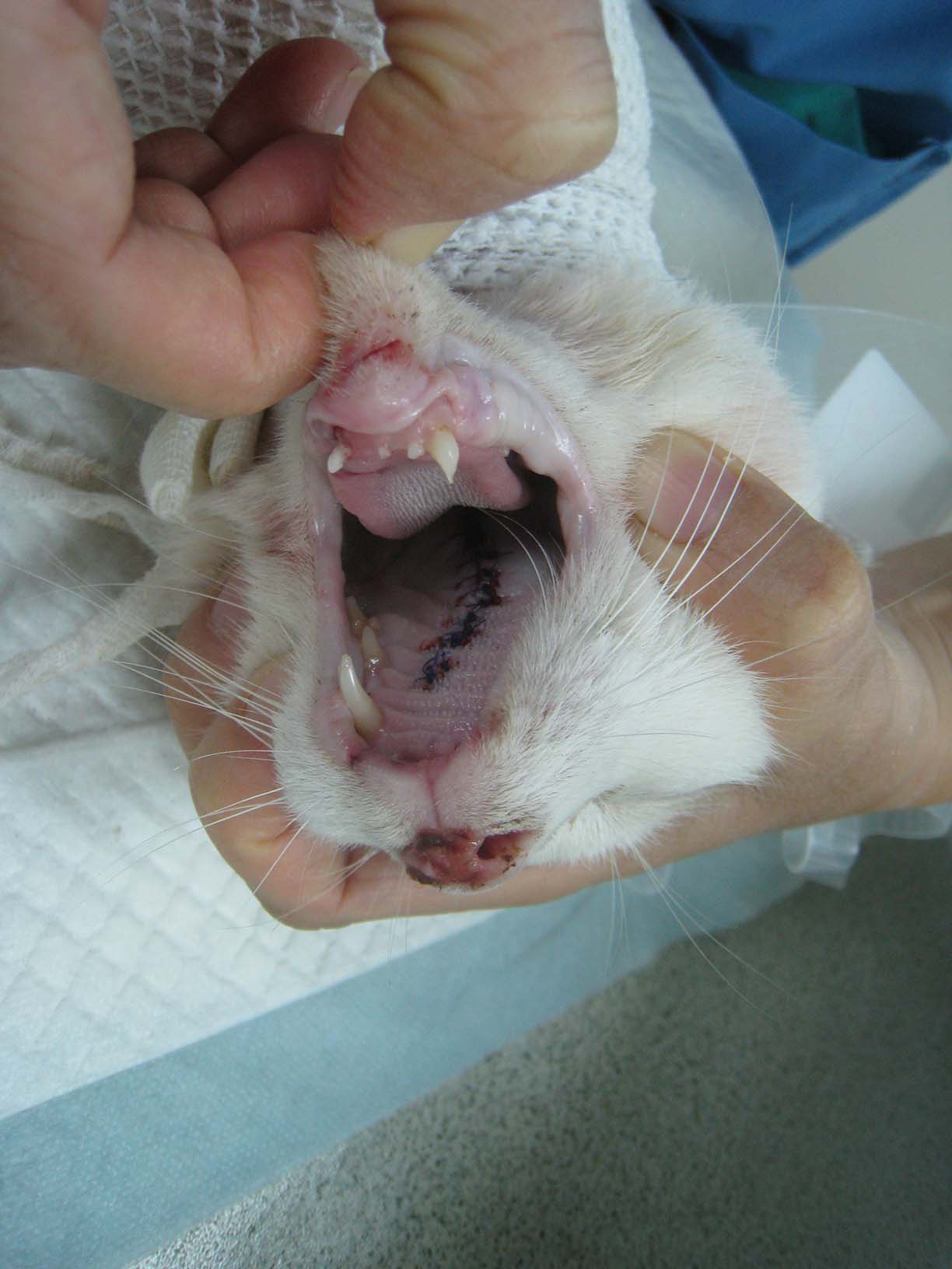 前天十全做了顎裂的縫合手術,手術相當順利,由於口腔的手術會讓十全無法進食,所以幫十全接了一條食道餵管,將食物直接注射到食道內,讓口腔的傷口盡快好起來;