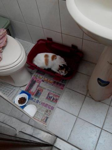 目前安置在家中廁所,買了貓砂、飼料、罐頭,現在我家廁所(很乾淨)暫時是十全的小套房,適應一個新環境又需要一段時間,尤其對像十全這麼敏感的貓來說,希望她能慢慢習慣,同時也幫十全在這邊找領養的主人,十全現在非常的健康,傷口復原狀況良好,而且相當有活力,今天早上還跑到我家頂樓隔壁躲起來,我跟我爸又哄又騙的才將他趕回貓籠中,不說還真看不出來他左腳在復健中,相當有活力呢!