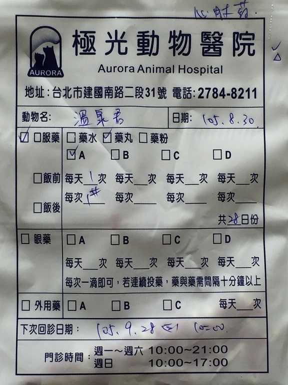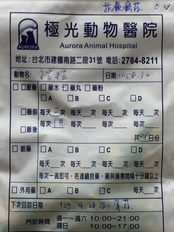 主題: 需按時服藥治療的香香、溫泉君、踏踏、罔市 申請者姓名: 臺北市支持流浪貓絕育計劃協會 花色: 申請日期: 2016-10-05 12:33:37 申請者部落格: 申請者臉書網址: 所在縣市/合作醫院: 台北市/其他院所醫助專案(醫院請先MAIL溝通) 治療費用: 9540元 需求人數: 21人 已結案 (2016-12-21 02:00:28) 報名人員: 林嘉南(已付款)、ERic YU(已付款)、Moon x2(已付款)、Jimmy(已付款)、劉明玲(已付款)、Po-Lin Chen、Po-Lin Chen x2(已付款)、郭小蓉 x2(已付款)、黃安琪 x2(已付款)、張雅筑 x2、chucl x2(已付款)、麥克 x4(已付款)、Candice Chao、FangRu Lin(已付款)、人中(已付款)、Pc Tsai(已付款)、 候補人員: 動物病情說明: 香香、溫泉君、踏踏和罔市都是需要按時服藥治療的貓咪,