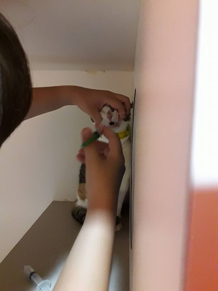 愛媽試著誘捕中於抓到帶來就醫治療動物近況說明: 貓咪出院後愛媽接回照顧