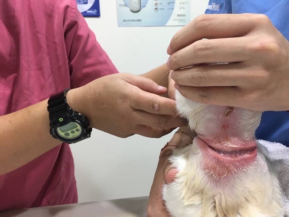 才發現牠的脖子好像被橡皮筋套住多時
