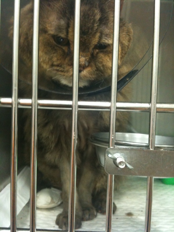小老虎是隻極有靈性、極逗趣、長相討喜的貓咪,肚子餓,還會敲碗請醫護人員們動作快一點!