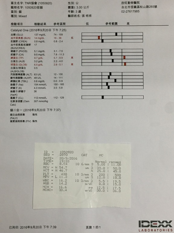 主題: 因颱風天帶往醫院檢查的協會後門街貓- 冠冠 申請者姓名: 臺北市支持流浪貓絕育計劃協會 花色: 申請日期: 2016-10-29 15:02:26 申請者部落格: 申請者臉書網址: 所在縣市/合作醫院: 台北市/欣旺動物醫院 治療費用: 5500元 需求人數: 12人 已結案 (2019-07-11 13:24:16) 報名人員: uihnd(已付款)、Iris(已付款)、妹妹(已付款)、jerr(已付款)、ERic YU(已付款)、周思婷(已付款)、豬妞妞(已付款)、Eric Chien(已付款)、Hayato Chen(已付款)、Shirley Chen、Lai Ying(已付款)、Teresa(已付款)、咪咪(已付款)、 候補人員: 動物病情說明: 冠冠原本是協會辦公室附近的食客,