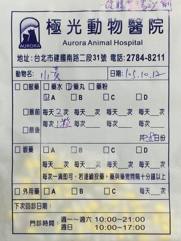 所以每隔一個月都會向醫生拿小黃的口服藥。
