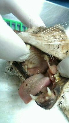 同時間醫生發現虎斑妹的口腔內有一大塊的肉芽已潰爛,於是幫貓咪口腔做清創手術,截除爛肉及爛牙。