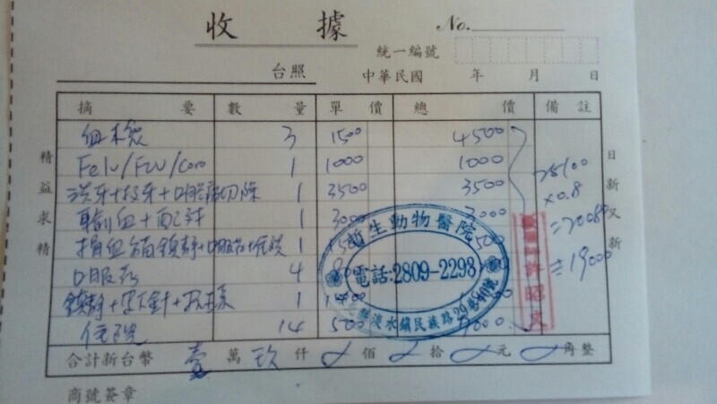 貓咪住院期間費用為23440元,其中志工自付4440元,還有19000元,需要大家的幫忙!