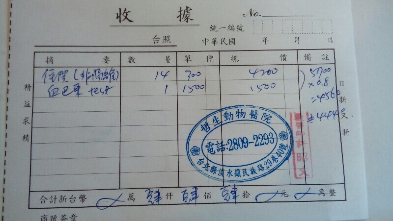 住院一段時間後,血液檢查HCT回復到24.3,黃疸也回到0.6。為節省醫藥費,由志工帶回照顧!