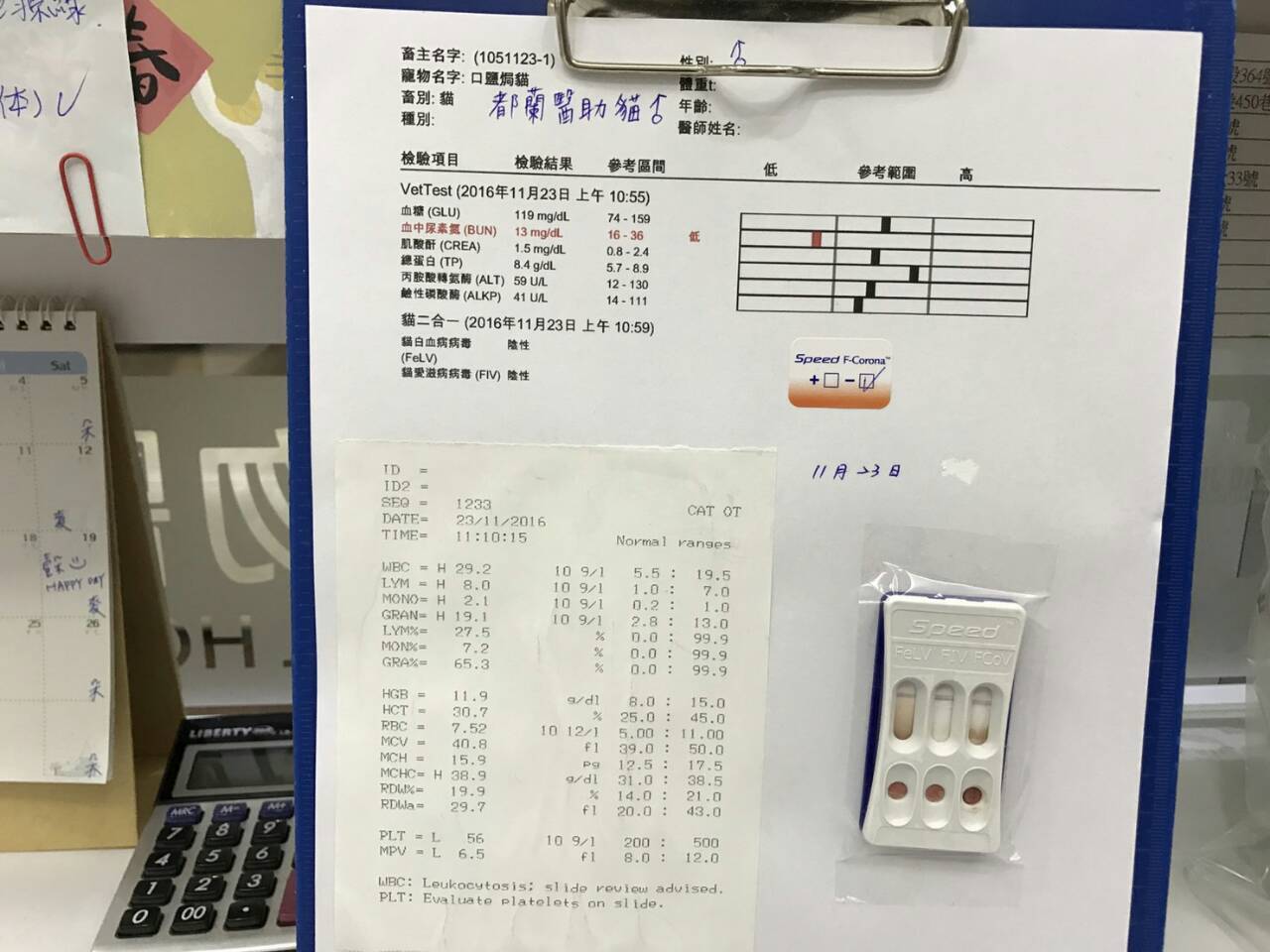 11/25∼26日住院期間,點滴,跟抗生素,及口炎治療藥也沒間斷過,但那幾日因為口腔牙齒拔除,傷口還未完全癒合,咀嚼乾飼料,所引起口腔內流血