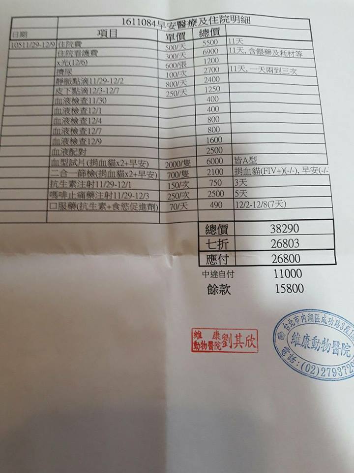 主題: 後腳拖行尾骨斷掉的懷孕母貓需要緊急醫療救援 申請者姓名: lois tsai 花色: 申請日期: 2016-12-21 00:38:35 申請者部落格: 申請者臉書網址: 所在縣市/合作醫院: 台北市/其他院所醫助專案(醫院請先MAIL溝通) 治療費用: 15800元 需求人數: 33人 已結案 (2022-05-13 15:20:47) 報名人員: Tina Tseng x2(已付款)、董珈瑄、Fox Yo(已付款)、lulumi x2(已付款)、Joe Shih(已付款)、王小盈(已付款)、Erin Lin x2(已付款)、Freesia Tsai(已付款)、PIN(已付款)、Mia Jheng(已付款)、SweetTpg(已付款)、Ashley(已付款)、ChrisLin x4(已付款)、Wenny Chen(已付款)、Isa喵(已付款)、惠青(已付款)、劉熊妹(已付款)、徐雅嬪(已付款)、小蘋塔羅的客人們(已付款)、Rainpi(已付款)、yuju x2(已付款)、Aisha Lung(已付款)、李嘉芸(已付款)、HTLE(已付款)、攸yu x3(已付款)、 候補人員: 動物病情說明: 11/28 早上志工接到通報市場內有傷貓後肢拖行,誘捕後帶到附近動物醫院。晚上轉診,X光確診尾巴斷了,超音波確定有懷孕2~3周大小貓胎兒,膀胱積尿,有血尿, 薦椎裂開。然而不確定薦椎旁的後腳神經是否受損, 貓咪有沒辦法自己排尿排便, 小貓不確定是否能存活。所以就先帶回來觀察了,但隔天貓咪狀況不佳,狀況不佳,不吃不喝不動,昨晚又帶去醫院血檢,貧血加上血尿,醫生建議輸血,我也緊急找到了血貓明天去配對,希望能給牠爭取一些時間看看能不能有機會治療復原。 動物近況說明: 早安已能自己排尿排便