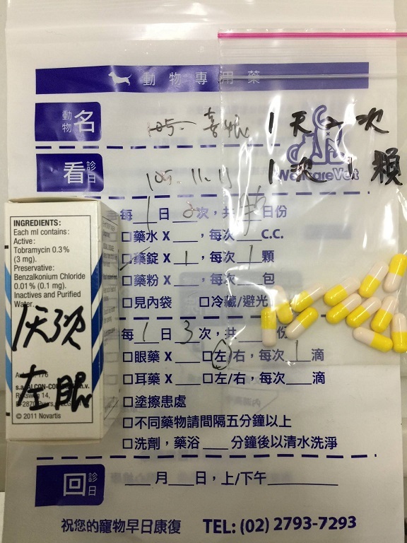 並且每天要點3次點必效、頭套必須戴著。