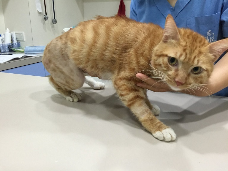 醫生在診視過大福的後雙腿狀況後,