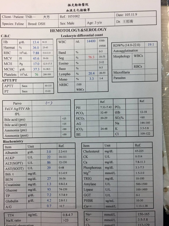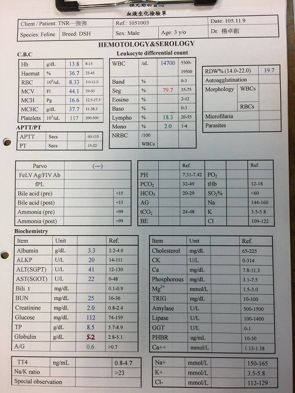 主題: 北投命運多舛的12隻貓中的大方、強強和大黑 申請者姓名: 臺北市支持流浪貓絕育計劃協會 花色: 申請日期: 2016-12-22 12:37:12 申請者部落格: 申請者臉書網址: 所在縣市/合作醫院: 台北市/其他院所醫助專案(醫院請先MAIL溝通) 治療費用: 10395元 需求人數: 23人 已結案 (2022-05-13 15:19:44) 報名人員: Jill S.(已付款)、Nastya Tzeng x4(已付款)、Jessica Pan(已付款)、王小盈(已付款)、小胖白(已付款)、徐雅嬪(已付款)、小蘋塔羅的客人們(已付款)、nicole chen(已付款)、愛兒 x2(已付款)、Celine Lin(已付款)、Pingo Li(已付款)、En Rong Shen(已付款)、掩日(已付款)、April Wen(已付款)、CTomato Max(已付款)、何偉靖(已付款)、游柏緯(已付款)、李瓶(已付款)、陳羿儒(已付款)、 候補人員: 動物病情說明: 大方、強強和大黑是北投榮X里老夫婦養的12隻貓咪其中3隻,