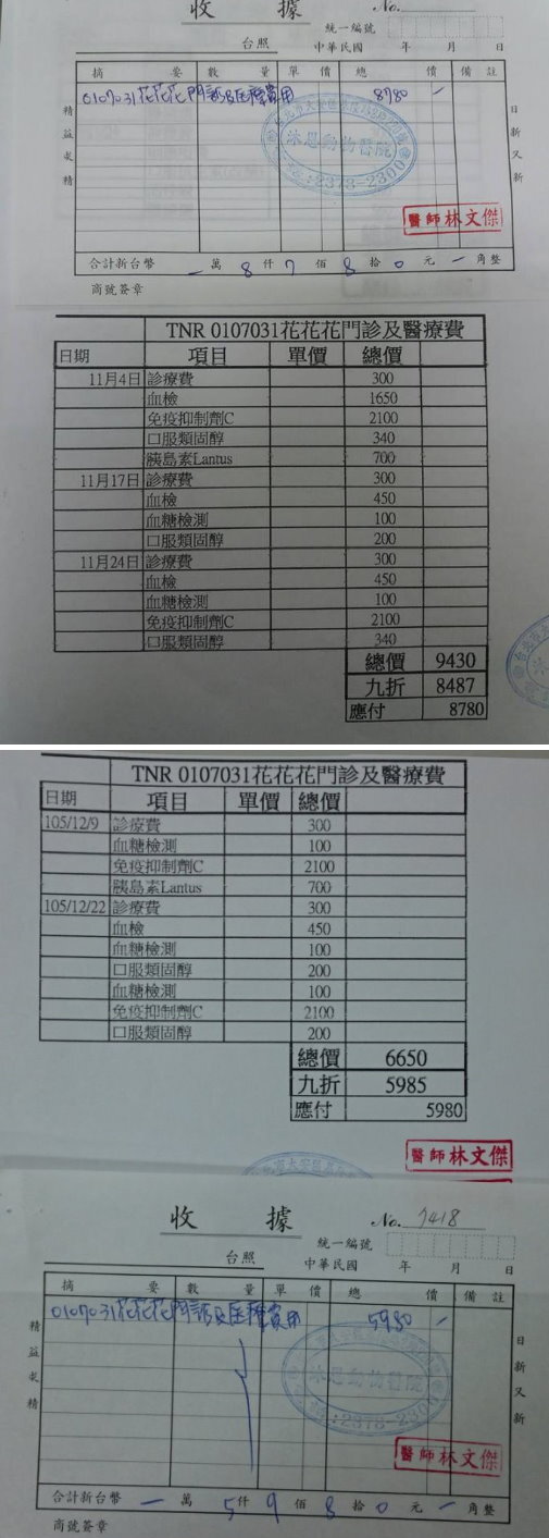 2017年1月13日新增12月份回診收據