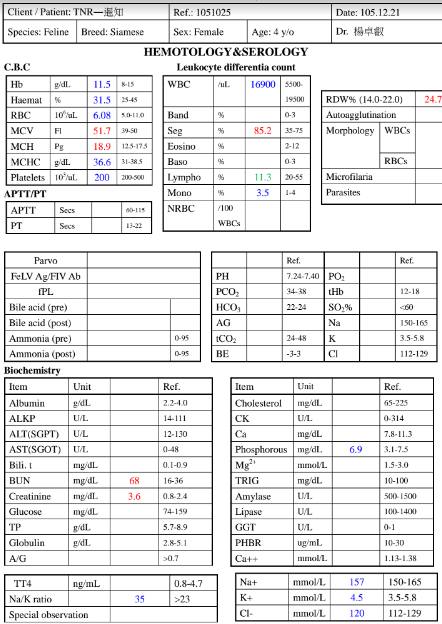 今天做了血檢,這次腎、磷指數上升,所以調整打水,改為早75ML、晚100ML,另外,造血針施打日期:12/24、12/27