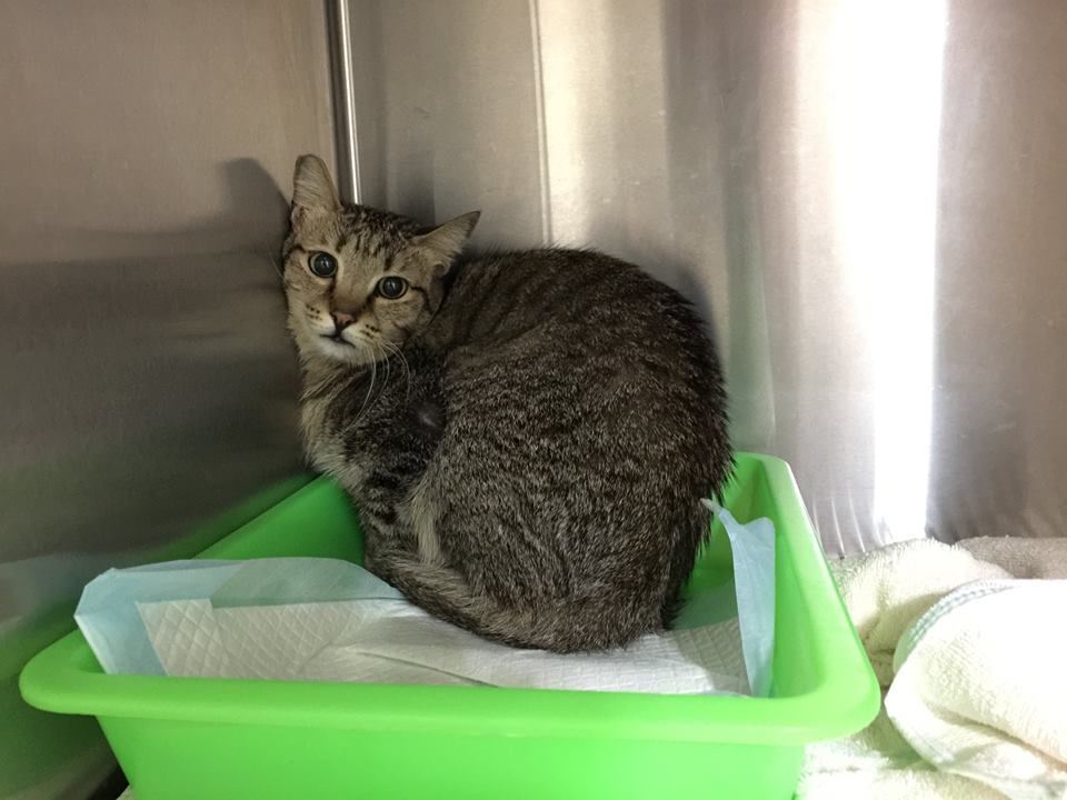 天生緊張的小葵,原本已安置於苗栗貓屋,