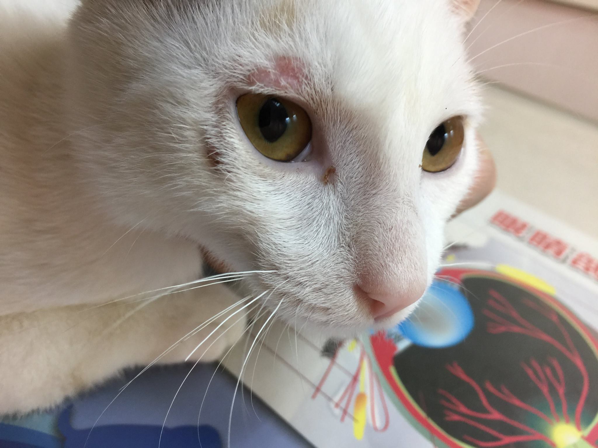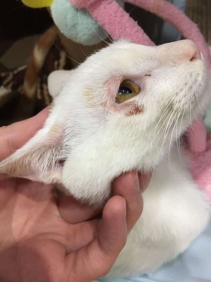 醫生今天拔了一點小四眼周黴菌的毛去做檢查,發現有改善了一些,這次開軟膏,請擦在有黴菌的地方薄薄一層就可以,頭套要繼續戴著。