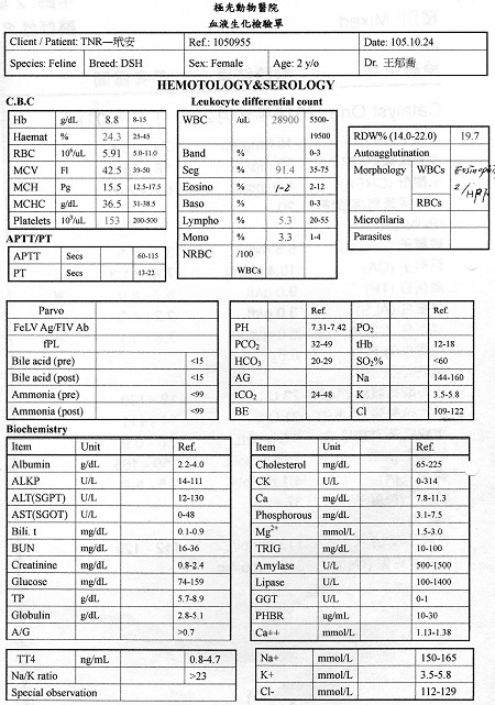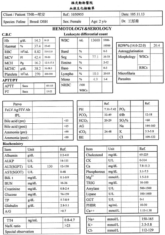 很難想像,小小的身軀承受了多次血液生化檢查、、耳垢檢查、糞檢、X光片、血巴東核酸診斷檢驗、皮下點滴注射、口服抗生素、化痰藥、抗組織胺、食慾促進劑、腸內寄生蟲驅蟲、肝腦錠、消化酵素、消炎眼藥水、耳藥水、噴霧,這些對她來說都是精神上的壓迫,肉體上的折磨,而她總是那個靜靜的、帶點惶恐的樣子躲在角落,承受著一切。