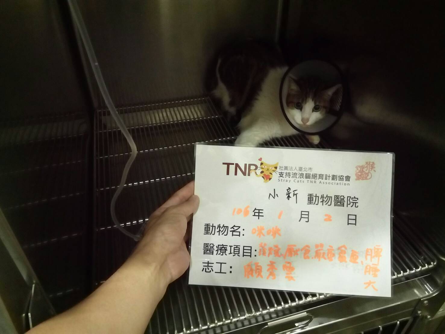 於是咪咪現在先留在喵喵茶養病,等待農曆年後天氣回暖,依病況研判可不可以野放,還是留在喵喵茶養老。