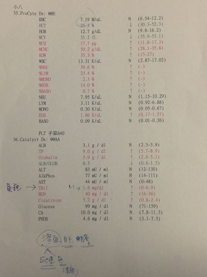 且小八一直以來都有腎指數偏高的情形,加上年齡稍高,
