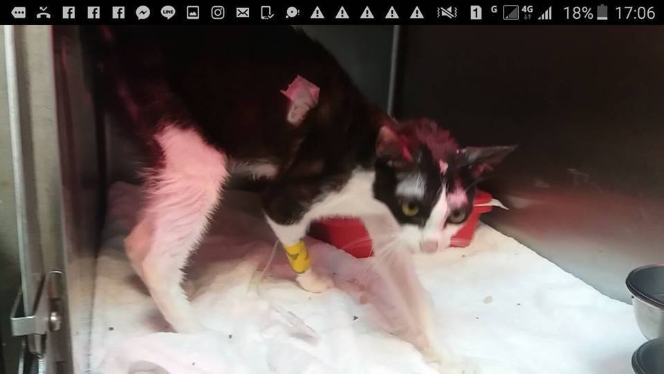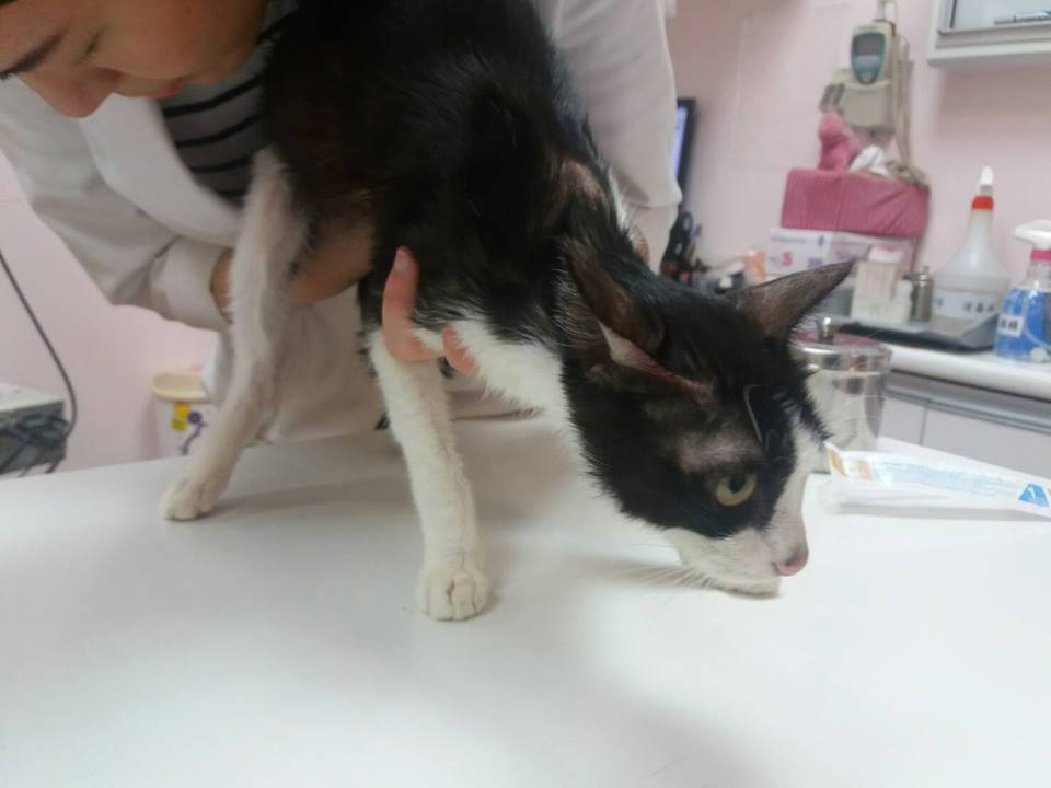 院方為小賓進行胰臟炎檢驗,並進行皮下點滴,