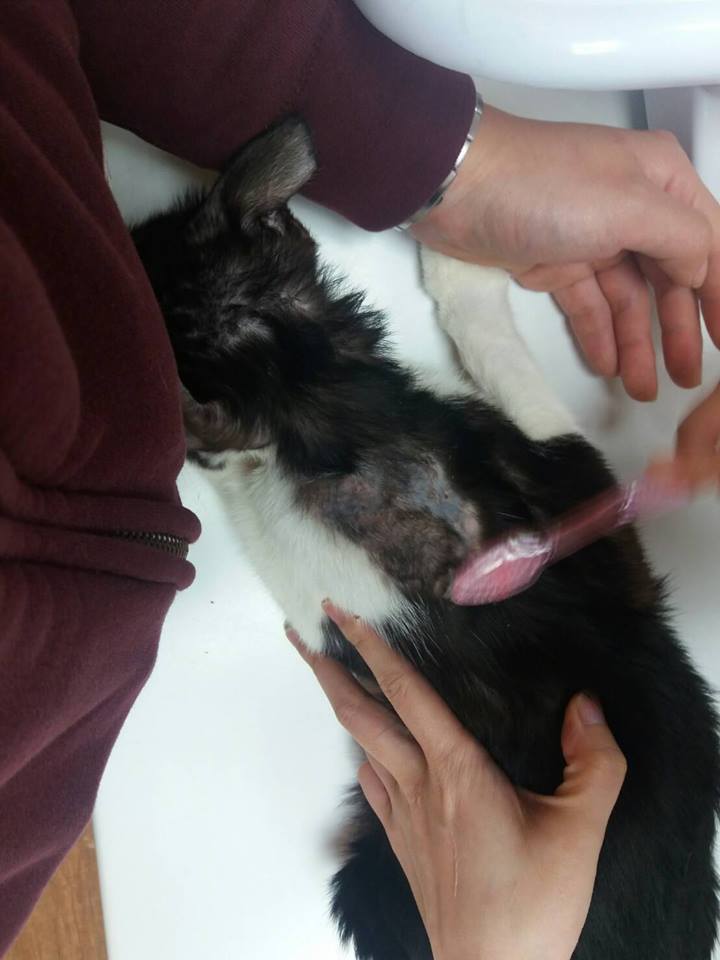 剩下耳朵的部分還有些微脫毛,從醫院回來後要擦藥。