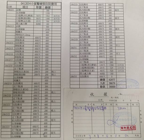 11/26~12/1院方為小賓持續進行皮下點滴施打並觀察,直至12/1狀況穩定後出院